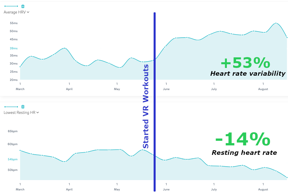 My HRV (a measure of health) has increased (from 32 to 49 -> +53%)